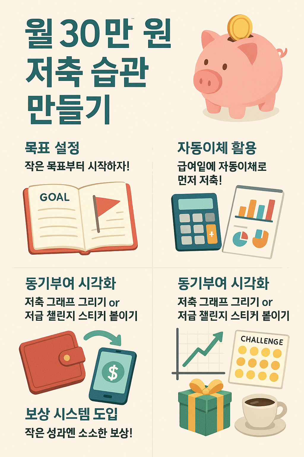 이런 습관 하나하나가 쌓이면 월 30만 원 저축은 무리 없는 목표가 됩니다.