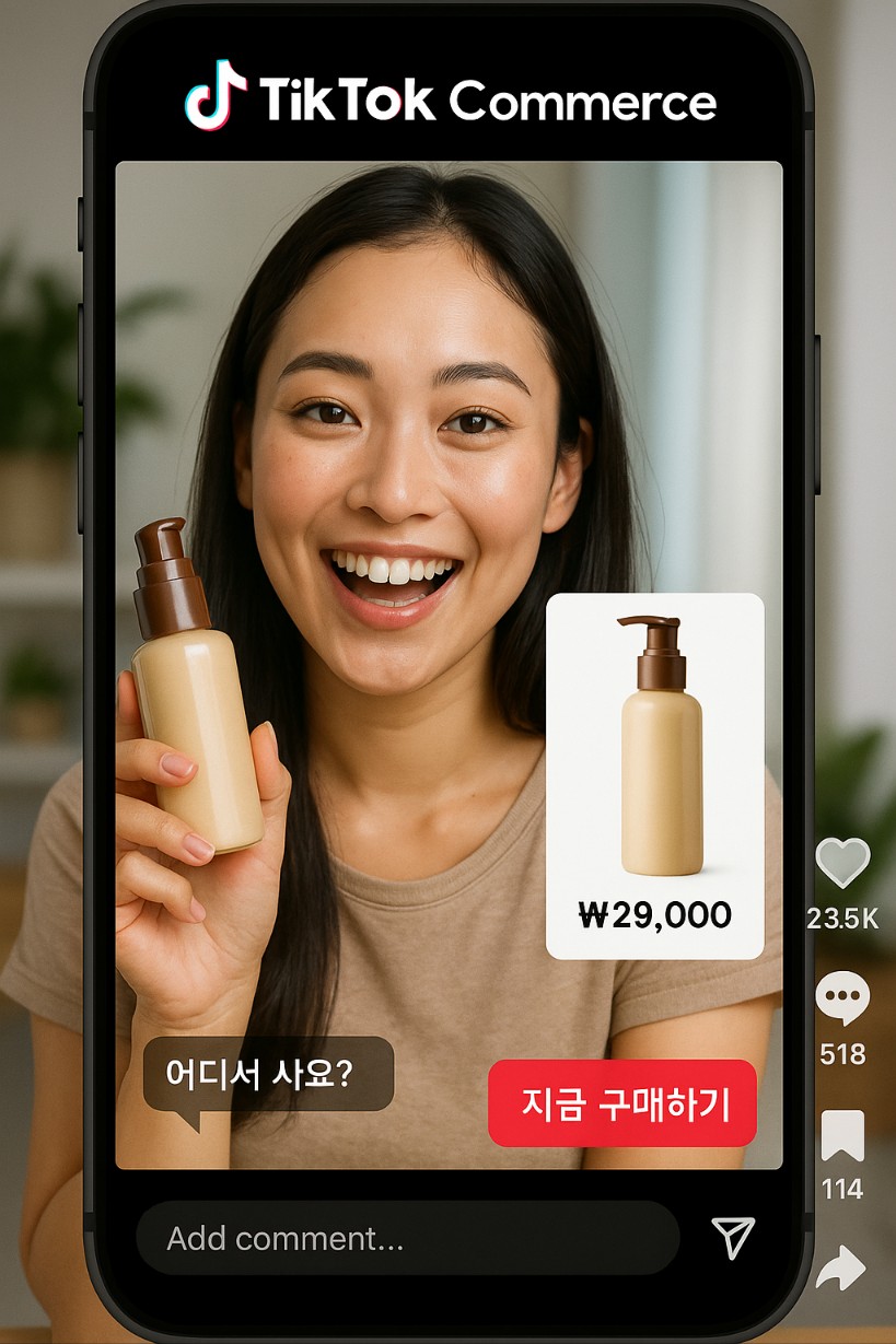 최근 몇 년 사이, 틱톡(TikTok)은 단순한 숏폼 동영상 플랫폼을 넘어 하나의 글로벌 마케팅 허브로 급부상하고 있습니다. 특히 Z세대와 밀레니얼 세대가 중심이 된 틱톡 사용자들은 콘텐츠를 소비하는 동시에 상품에 대한 구매 결정까지 내리는 '쇼퍼테인먼트(Shoppertainment)' 트렌드를 형성하고 있는데요. 이러한 흐름 속에서 등장한 것이 바로 **‘틱톡커머스(TikTok Commerce)’**입니다.